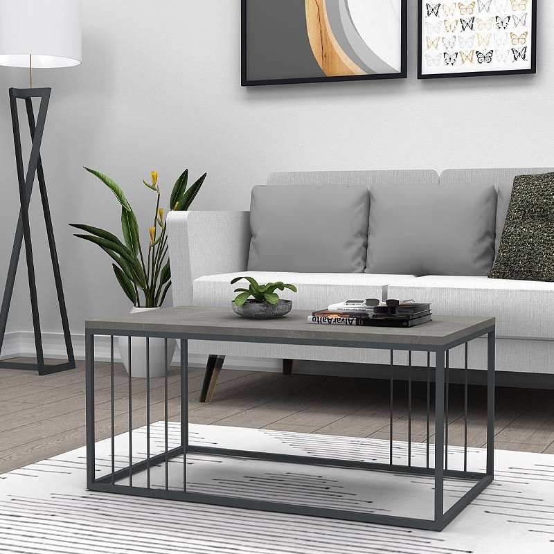Τραπεζάκι σαλονιού Halbert Megapap μεταλλικό - μελαμίνης χρώμα γκρι σκυροδέματος - ανθρακί 90x50x40εκ.<br></span>