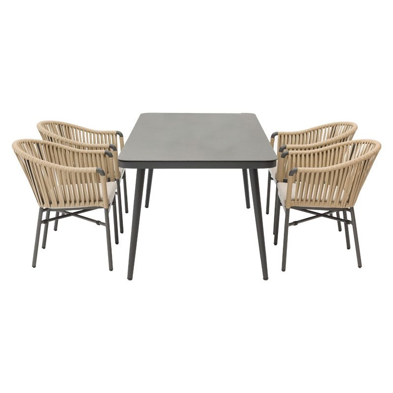 <p>Τραπεζαρία Ecco-Ditte pakoworld σετ 5τμχ αλουμίνιο ανθρακί-textilene μπεζ 160x90x75εκ</p>