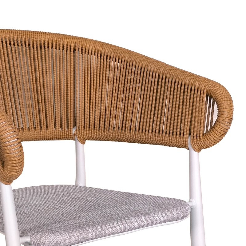 <li>Έδρα κατασκευασμένη από textilene. Το textilene είναι ένα εξαιρετικά ανθεκτικό υλικό που χρησιμοποιείται ευρέως σε επίπλωση εξωτερικών χώρων και εξαρτήματα. Αποτελείται από πολυεστερικές ινώδεις που επικαλύπτονται με PVC (πολυβινυλοχλωρίδιο), δημιουργώντας ένα υλικό που συνδυάζει ανθεκτικότητα, αντοχή στις καιρικές συνθήκες και εύκαμπτη υφή. Το υλικό αυτό επιτρέπει τη διέλευση του αέρα, βοηθώντας στη διατήρηση μιας δροσερής αίσθησης κατά τη χρήση.</li>