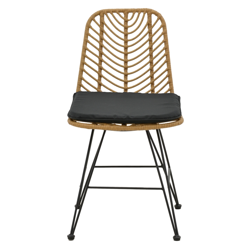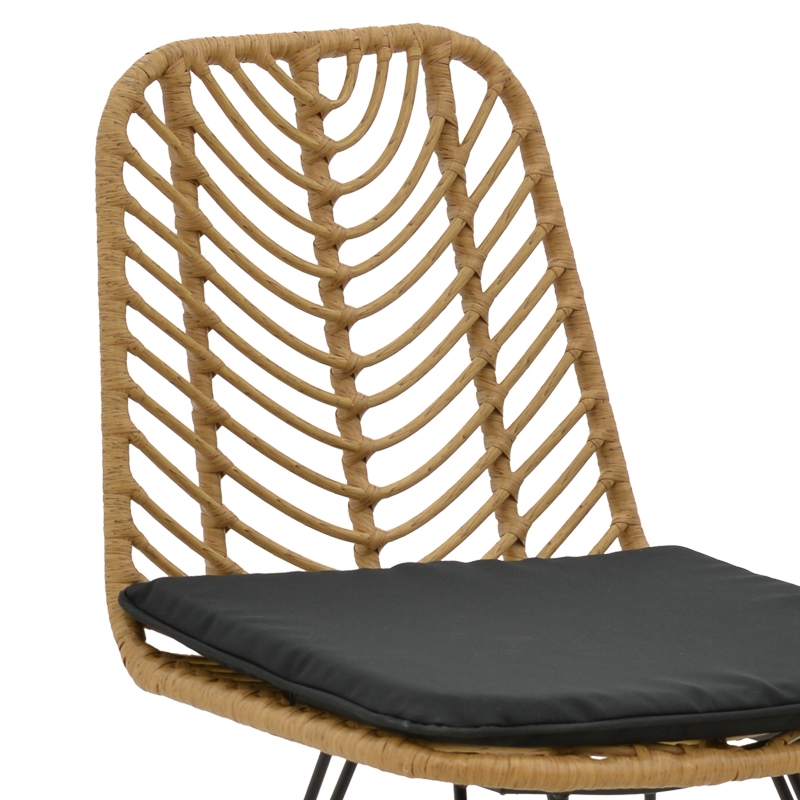 * Κυρίως επιφάνεια καρέκλας από PE rattan σε φυσικό χρώμα. Το PE rattan είναι ένα είδος οικολογικού συνθετικού rattan, ανακυκλώσιμο και με μεγαλύτερη ανθεκτικότητα σε σχέση με τα άλλα είδη.<br />