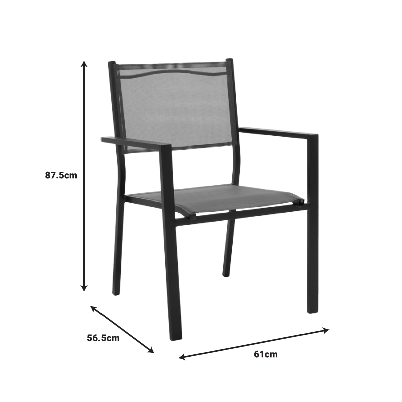 <li>Διατίθεται σε χρώμα μαύρο με textilene σε ανθρακί απόχρωση.</li>