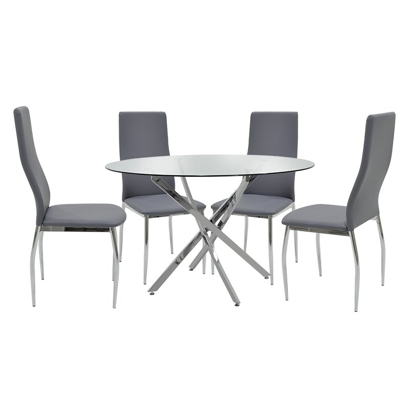 Τραπεζαρία Steve-Jella pakoworld σετ 5τεμ γυαλί 8mm χρώμιο-γκρι Φ120×74,5εκ</p>