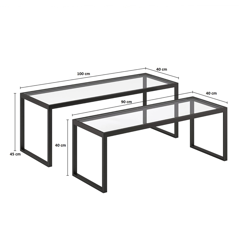 <p><br>Τεχνικά χαρακτηριστικά:<br>* Κατασκευή από μέταλλο εξαιρετικής ποιότητας με μεγάλη αντοχή σε φθορά και χρόνο. Ακόμη στα υλικά κατασκευής περιλαμβάνεται και το γυαλί.<br>* Προσφέρεται σε χρώμα κλασσικό μαύρο το οποίο απογειώνει την εικόνα του προϊόντος προσδίδοντάς του εκλεπτισμένο στυλ.<br><br>Διαστάσεις προϊόντος:<br>Μήκος: 100 εκ<br>Πλάτος: 40 εκ<br>Ύψος: 45 εκ<br><br>Σχόλια:<br>Το προϊόν παραδίδεται σε εργοστασιακή συσκευασία και με αναλυτικό οδηγό συναρμολόγησης.<br>Το χρώμα του προϊόντος μπορεί να διαφέρει ελαφρώς από την εμφάνιση της φωτογραφίας στην οθόνη σας.<br>