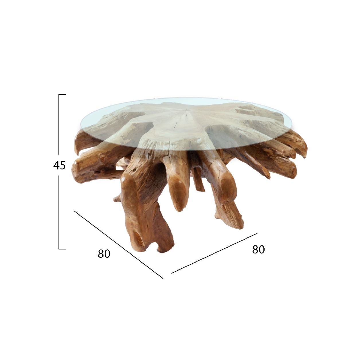 Το τραπέζι είναι κατασκευασμένο από την μασίφ ρίζα του δέντρου ΤΕΑΚ και java wood. Το μασίφ συνιστά ένα είδος ξύλου, καθαρό και ατόφιο, που παραδοσιακά χρησιμοποιούν οι μαραγκοί για την κατασκευή επίπλων. Το μασίφ είναι η πιο ακριβή επιλογή σε είδος ξύλου αλλά ξεχωρίζει για την διαχρονική αισθητική του. Το αποτέλεσμα που προσφέρει στον κάτοχό του είναι πραγματικά μοναδικό. <br />