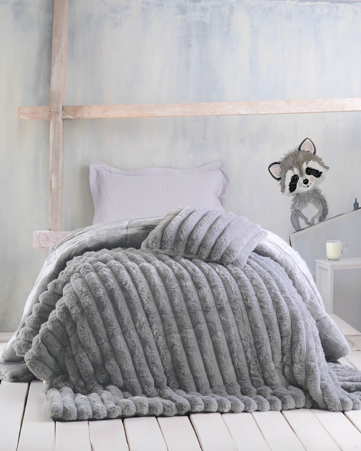 Trinity γούνινη κουβέρτα διπλής όψης σε γκρι χρώμα 160x220 εκ