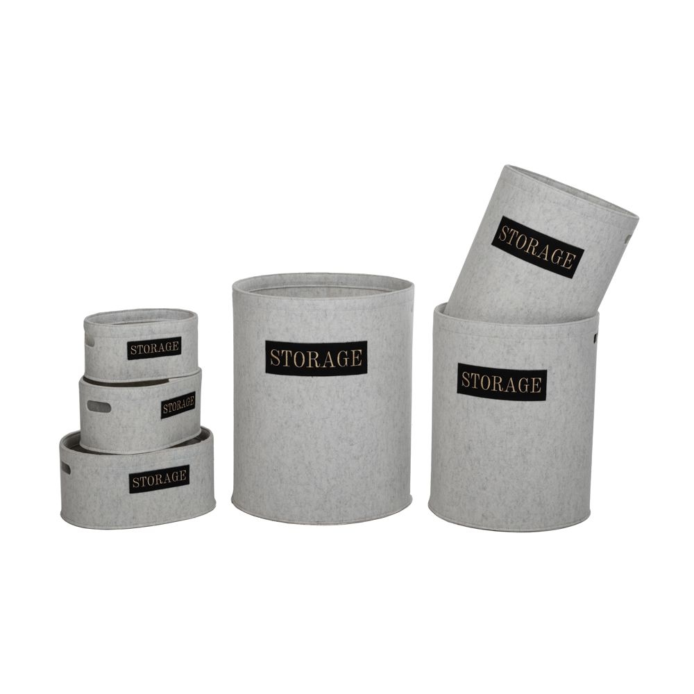 Τσόχινα στρογγυλά καλάθια Storage σε γκρι χρώμα σετ 6 τεμαχίων