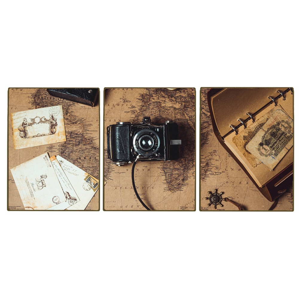 Vintage φωτογραφική μηχανή τρίπτυχος πίνακας ξύλινος χειροποίητος