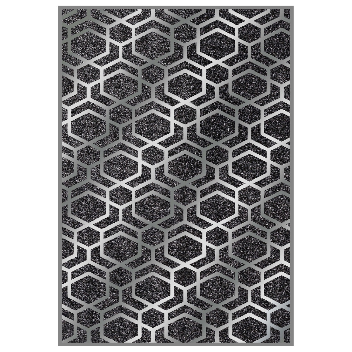 Το μοντέρνο αυτό χαλί διαθέτει φόντο σε ΓΚΡΙ χρώμα και κυψελωτό σχέδιο σε όλη την επιφάνεια του χαλιού σε ΑΣΗΜΙ χρώμα, όπως ΑΣΗΜΙ είναι και η μπορντούρα του χαλιού. Η αίσθηση της συμμετρίας που δίνει αυτό το χαλί αιχμαλωτίζει το βλέμμα και ερεθίζει τη φαντασία, με αποτέλεσμα να μην μπορείς να πάρεις τα μάτια σου μακριά από αυτό το χαλί. Άλλωστε, η γοητεία πού ασκεί το χαλί είναι τόσο δυνατή, πού κανένα δεν αφήνει αδιάφορο. <br />
