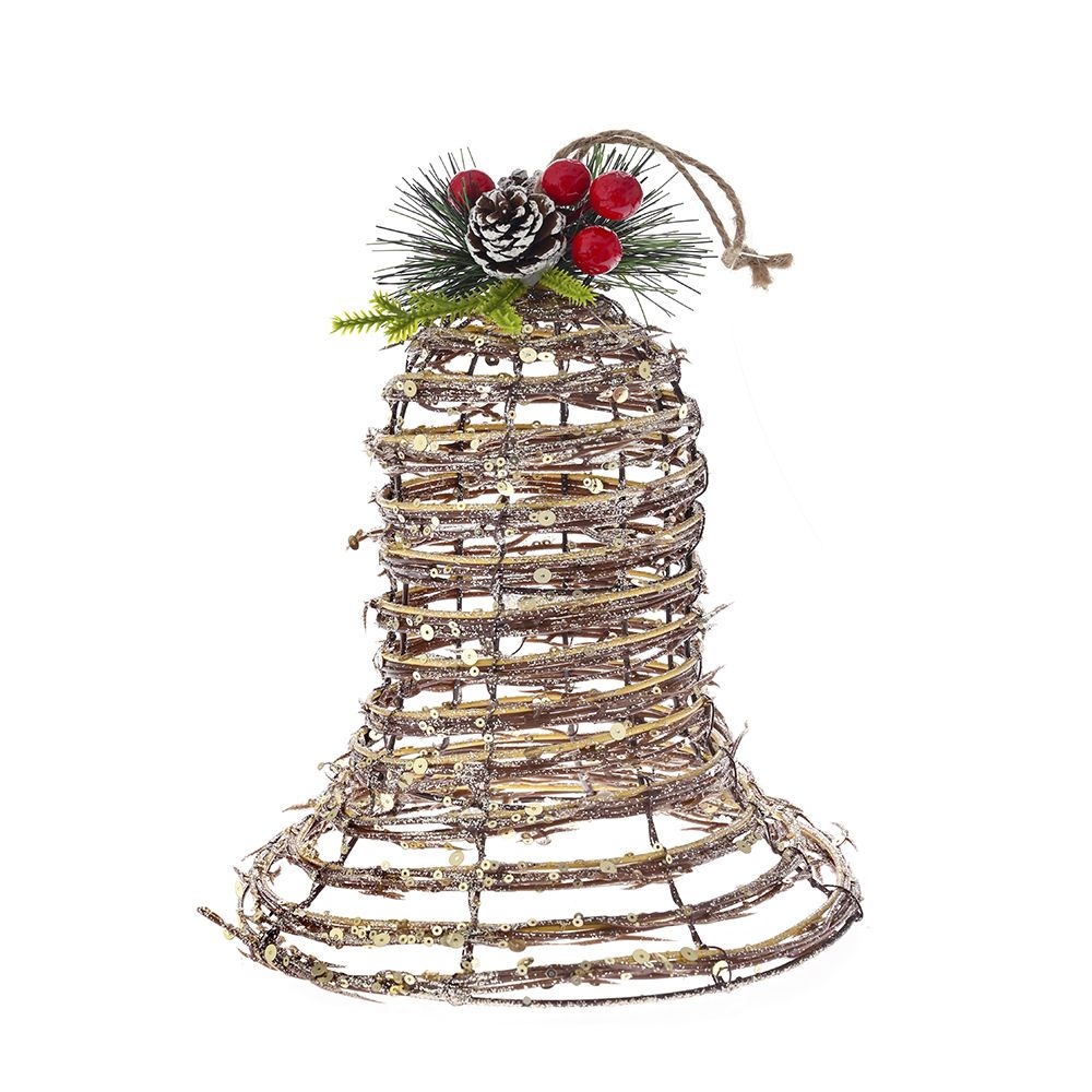 Χριστουγεννιάτικη κρεμαστή καμπάνα από ράταν με γκι 20 εκ
