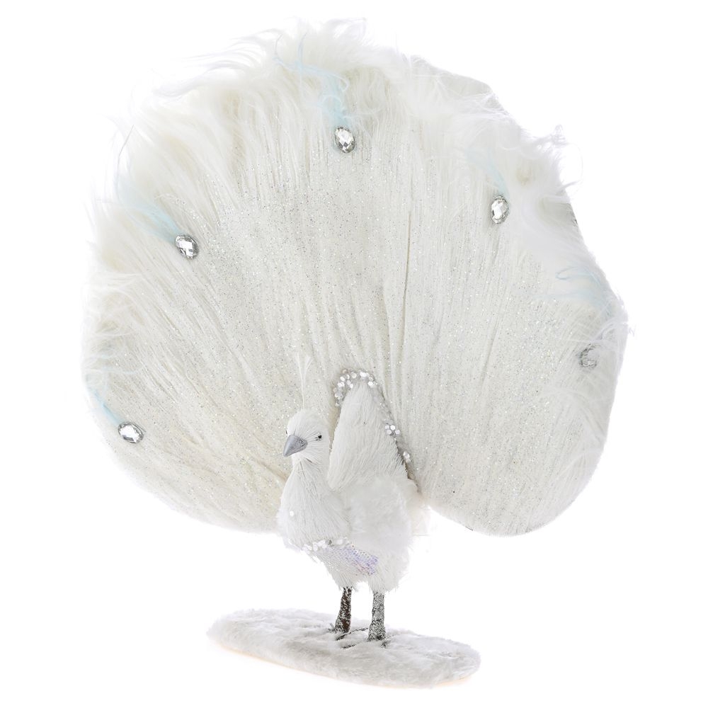 Χριστουγεννιάτικο διακοσμητικό παγώνι λευκό με γούνα στην ουρά 40x13x40 εκ