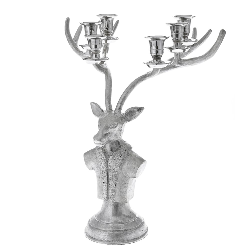Χριστουγεννιάτικο κηροπήγιο με μεταλλική προτομή ελαφιού σε απόχρωση ασημί 46 εκ