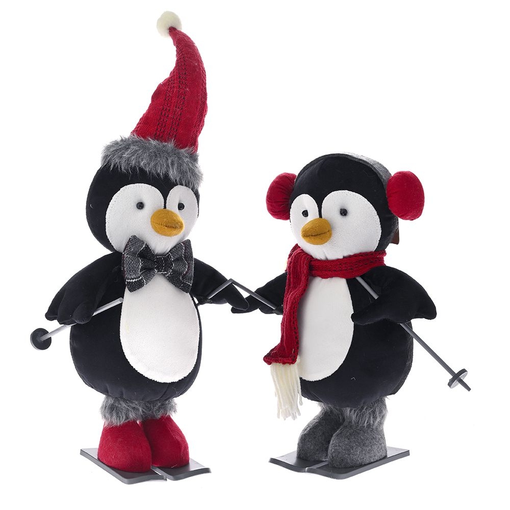 Υφασμάτινοι πιγκουίνοι σε κόκκινο και γκρι χρώμα σετ των δύο 14x12x48 εκ